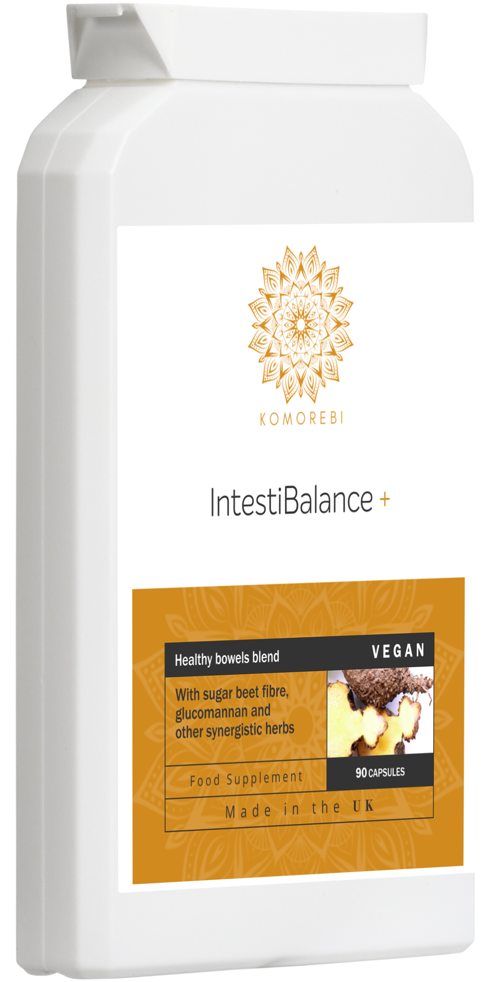 IntestiBalance + "Beet fibre, aloe vera, rhubarb, cayenne and botanicals for cleansing and digestive support"