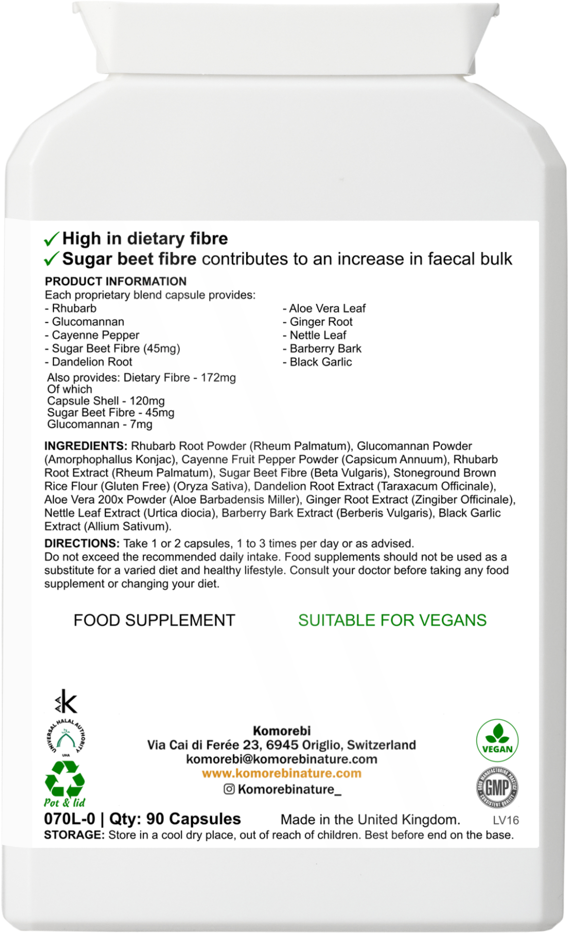 • Sugar beet fibre: increases faecal bulk by absorbing water and enhancing beneficial bacterial mass in the colon.
